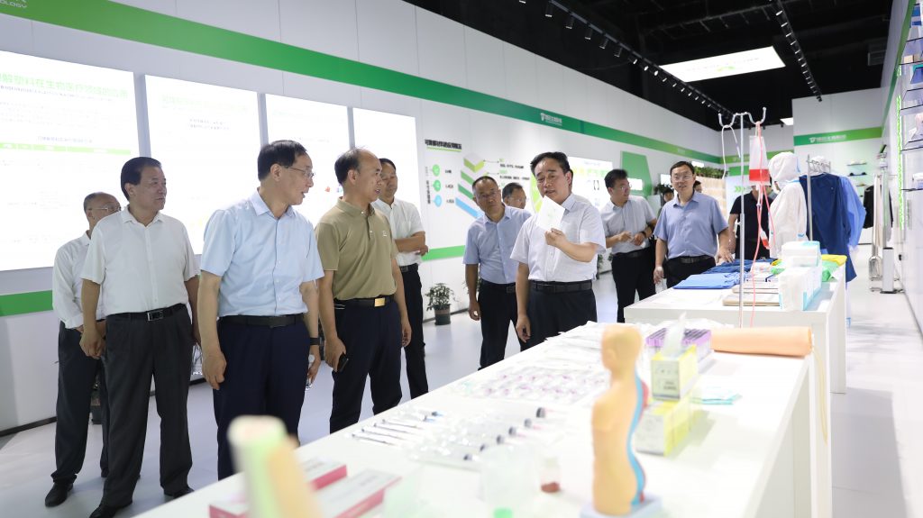 楚耀華主席一行參觀了特創生物的產品展廳及研發中心。展廳內,琳瑯滿目的生物基可降解制品令人目不暇接,從生物改性原料到豐富的制品系列,每一件展品都凝聚著特創生物團隊的智慧與汗水。在聽取了公司王總就特創生物的發展歷程、核心競爭力以及團隊建設等方面的情況匯報后,楚耀華主席對公司強大的企業規模、優良的產品特性以及多元化的發展戰略給予了高度評價,并希望公司在保持自身經濟效益增長的同時,繼續發揮產品技術優勢,加大研發投入,提升企業競爭力,為推動綠色經濟、循環經濟和可持續發展貢獻更多力量,努力成為行業標桿與典范。
