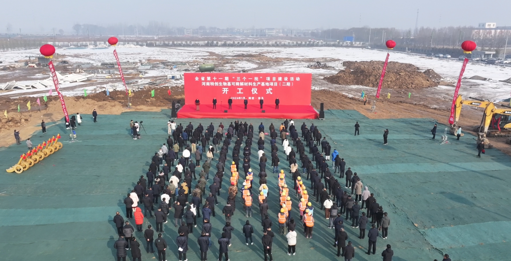 1月2日上午,河 南 特 創 生 物 基 可 降 解 材 料 生 產 基 地 項 目 ( 二 期)開工儀式舉行,市人大常委會副主任、浚縣縣委書記王海濤,縣長王遠征等領導出席開工儀式。