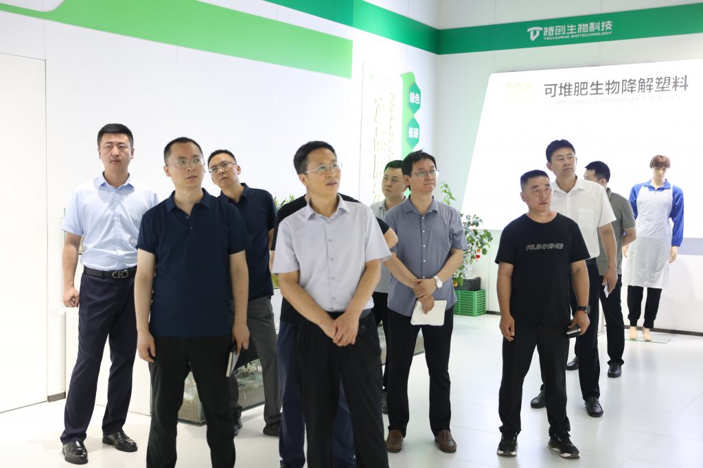 郜善軍一行首先來到公司產(chǎn)品展廳,詳細(xì)了解了河南特創(chuàng)豐富的可降解產(chǎn)品系列,對公司產(chǎn)品的技術(shù)領(lǐng)先性、環(huán)保效益及市場前景給予高度評價。他指出,河南特創(chuàng)在可降解材料領(lǐng)域的深耕,契合全球環(huán)保潮流與國家綠色發(fā)展戰(zhàn)略,前景廣闊。隨著環(huán)保意識的提升與政策扶持,可降解材料市場將迎來爆發(fā)式增長,河南特創(chuàng)的技術(shù)實力與市場拓展能力將成為行業(yè)發(fā)展的重要驅(qū)動力。